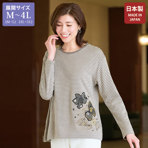 [LL(LL・3L)]肩巾41、バスト114(93~108)、袖丈60、着丈66 [4L(4L・5L)]肩巾43、バスト124(107~122)、袖丈61、着丈67 |