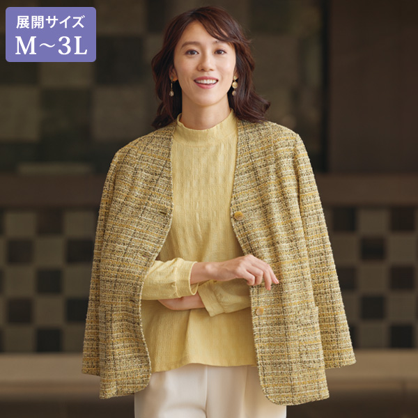 [L]バスト(86~94)、前身丈60、後ろ身丈63、肩巾38、袖丈54 [LL]バスト(93~101)、前身丈62、後ろ身丈65、肩巾40、袖丈56 [3L]バスト(100~108)、前身丈62、後ろ身丈65、肩巾42、袖丈56 |
