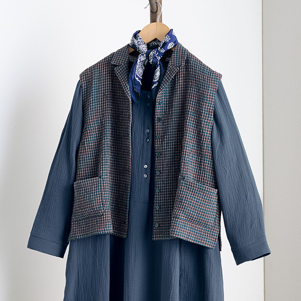 ガーゼの優しさを堪能するナチュラルベーシック。 腰から広がるシルエットに、綿混ガーゼゆえのナチュラルな生地感。 着心地も印象も優しいワンピースは、さり気ないボタン配色デザインが、家でも外でも着映える理由です。 □綿100% 1635541