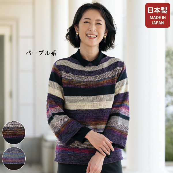 美しい生地感や繊細な色柄、優しい着心地まで上質な国産カットソー ゆったり着られて、襟付きデザインで印象はきちんと。 伸びやかでなめらかな生地で仕立てたプルオーバーは着心地の良さも自慢です。 □日本製 □ストレッチ素材 2611006,2611007