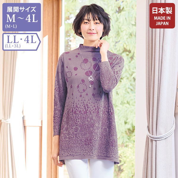 ●色・パープル系 ●日本製 ※裁断により柄位置が写真と異なる場合がございます。後ろ身頃は同柄です。 ※アクセサリーは参考商品です。 ※手洗いOK ※ドライクリーニング |