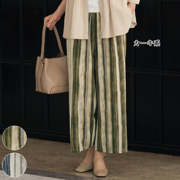 粋なストライプと上品カラーでゆるりと楽してスマート見せ。 優しい色が上品見えするブラウスは縦ラインがアクセント。 腰から広がるピンタックや胸元のタックが縦ラインを強調しスマート見えを叶えます。 □綿混 2623402