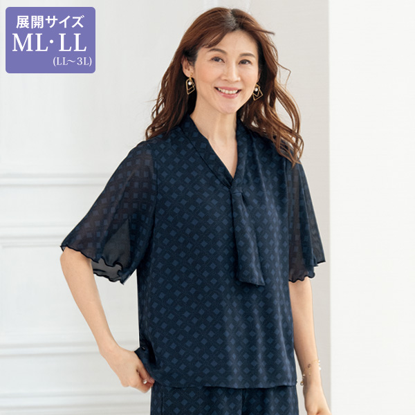 透け感があり涼し気で、軽やかなシフォン素材のセミワイドパンツです。 同柄のトップスと合わせれば、エレガントな着こなしが可能。 別売りの同素材のブラウスとのセットアップがおすすめです。 □らくらくウエスト